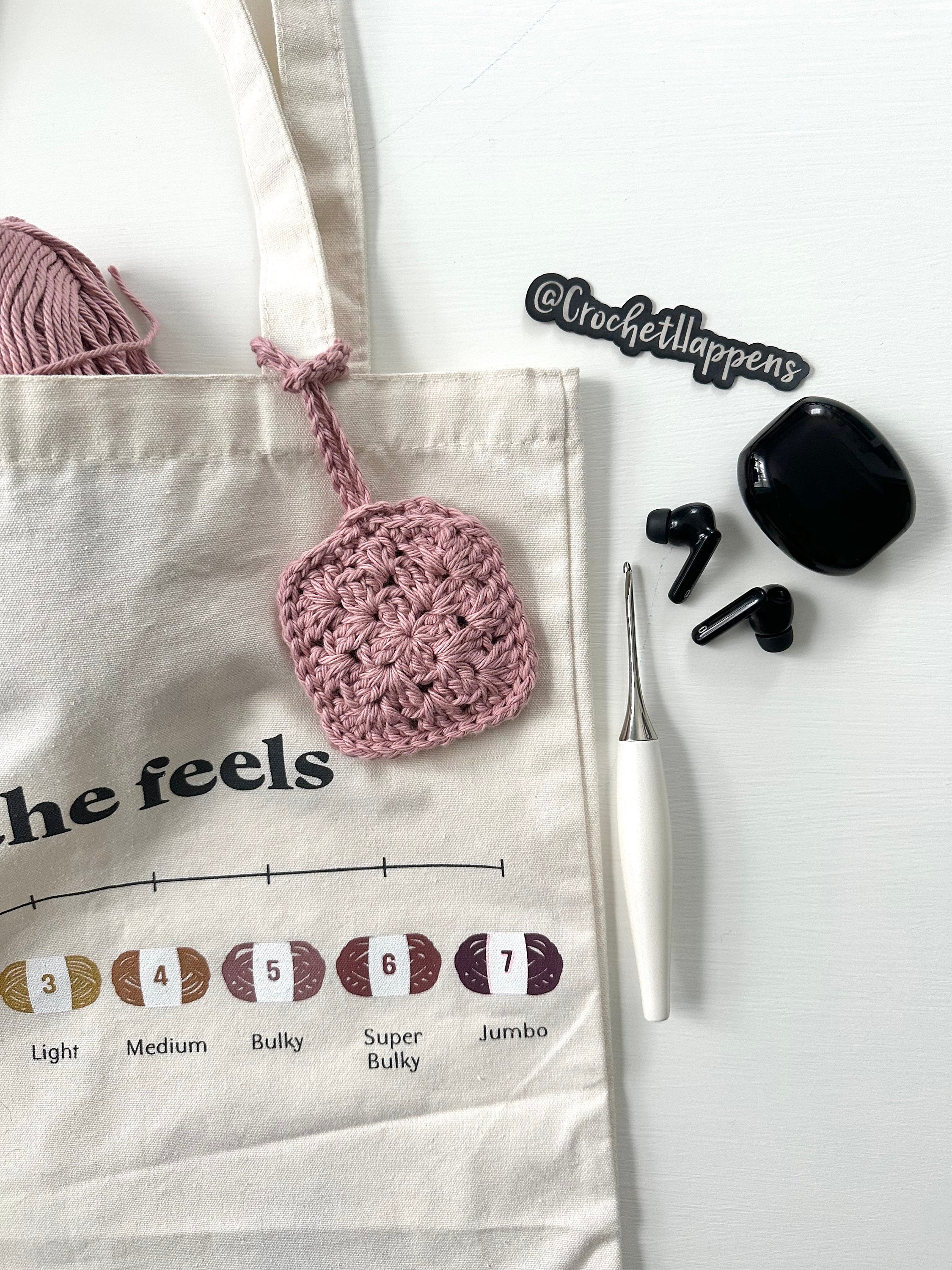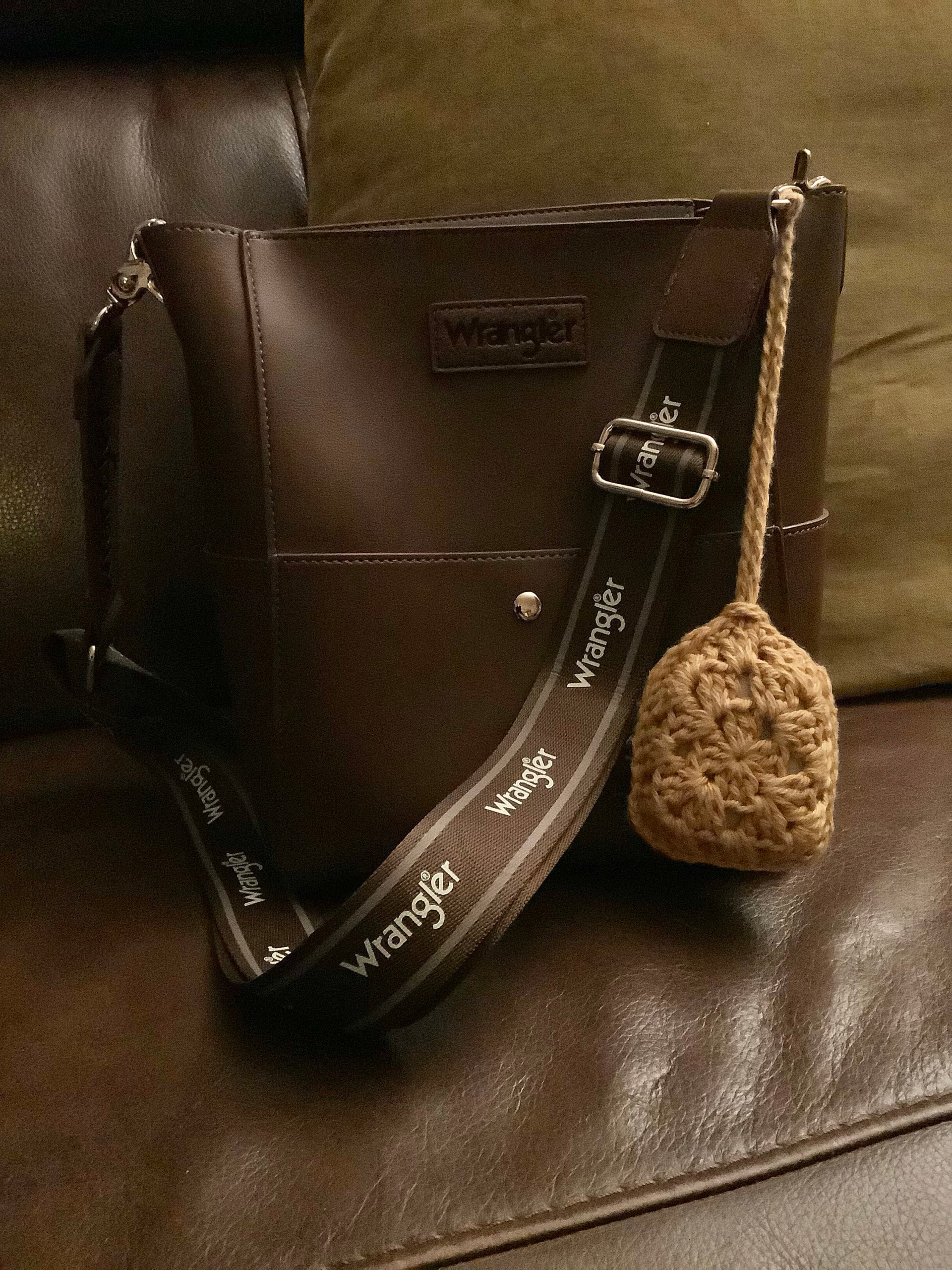 Measures 3” x 3” with a 10” loop (from end to end), perfect for wrapping around your bag handle.